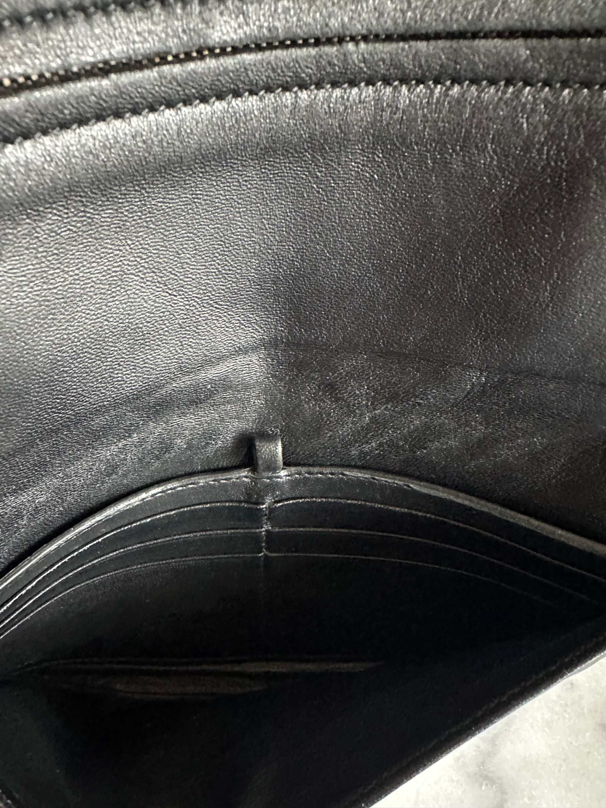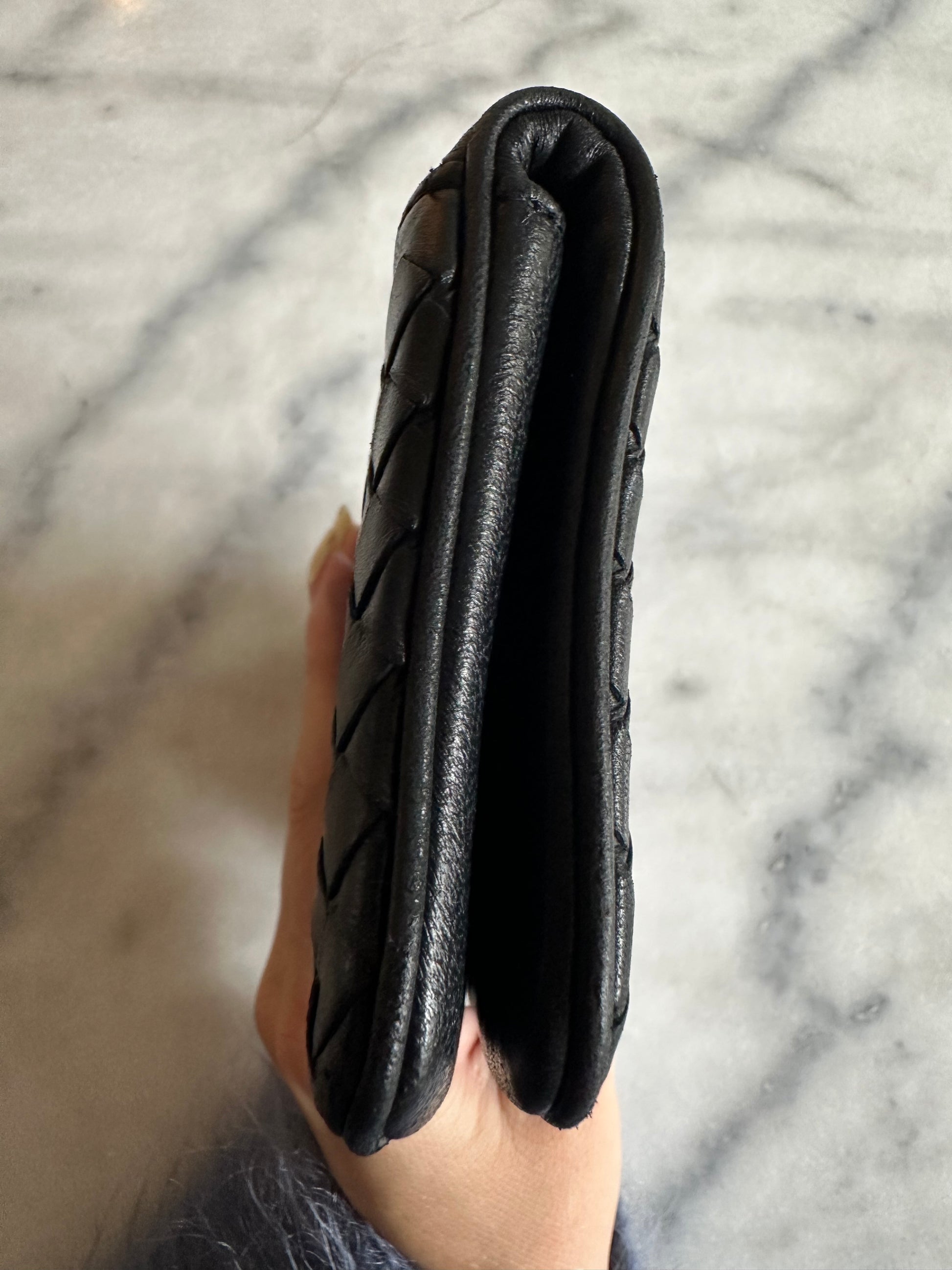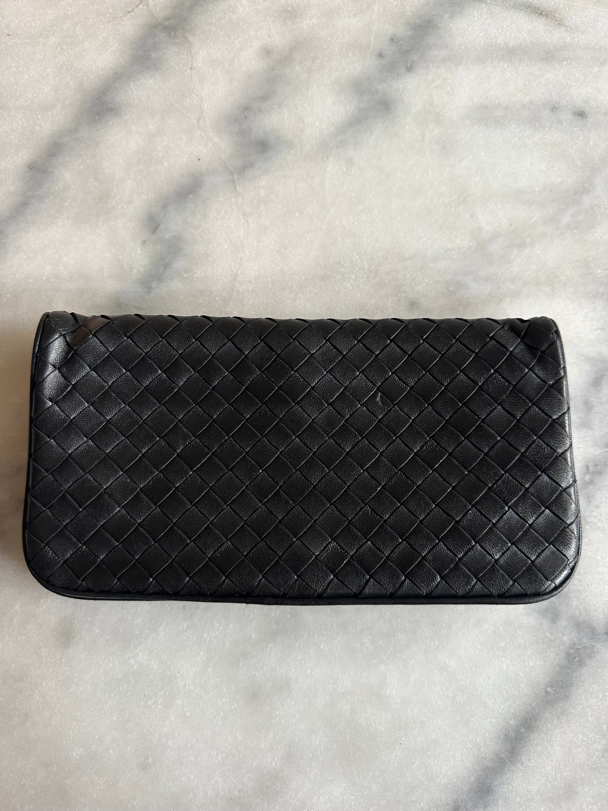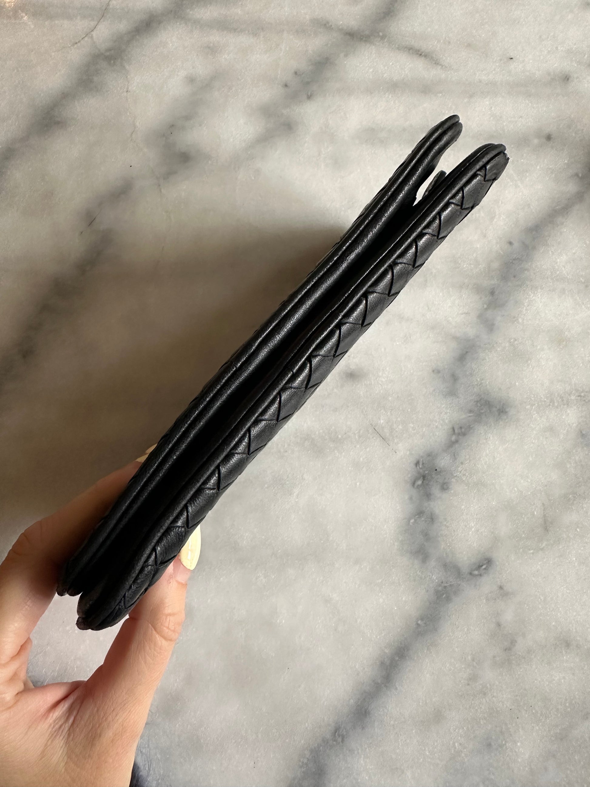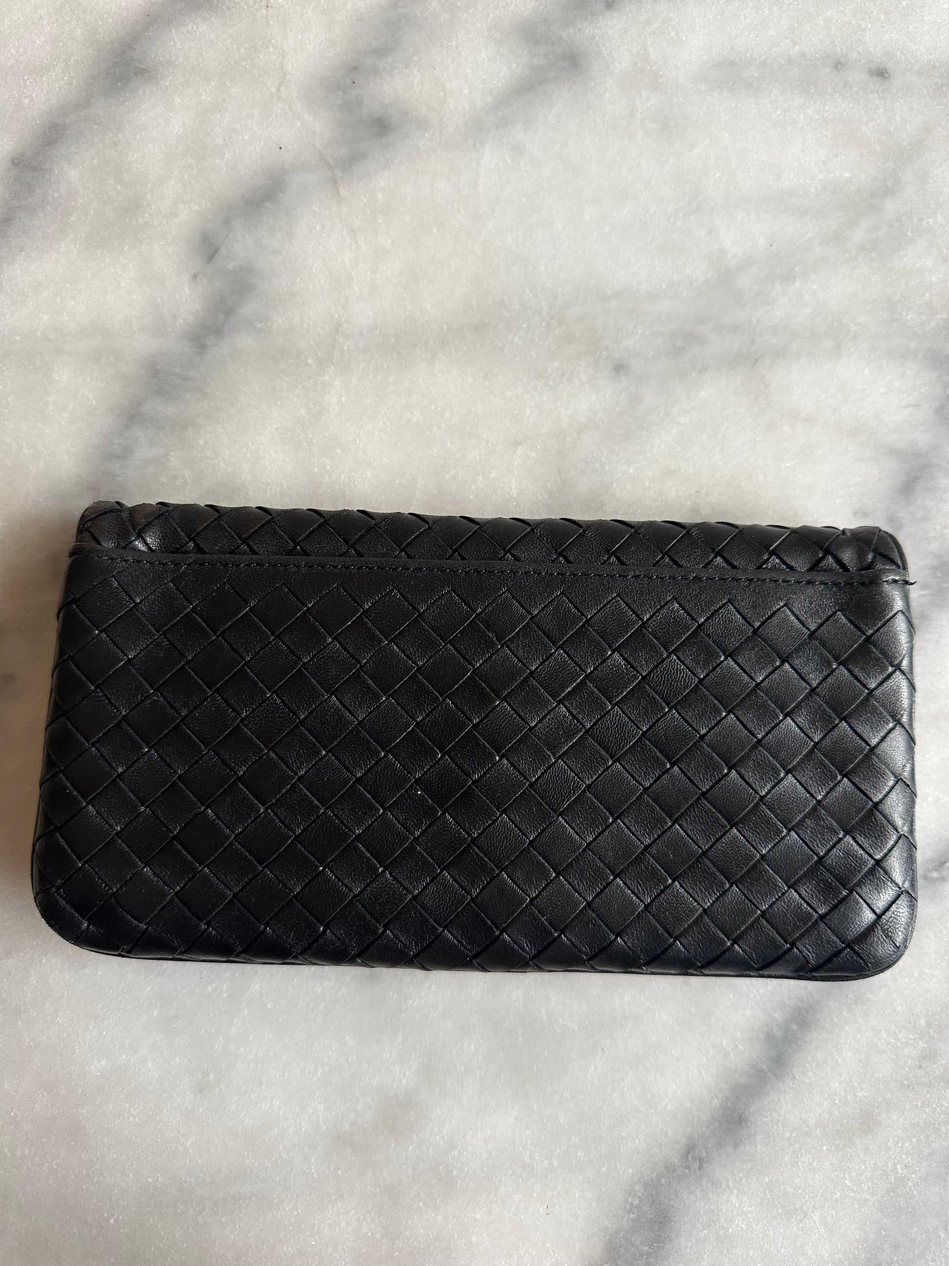 Beautiful vintage Bottega Veneta wallet clutch in black braided leather. Some small signs of wear but overall in good condition. Space for coins and cards. Can also be worn as a clutch. Comes with the dustbag.