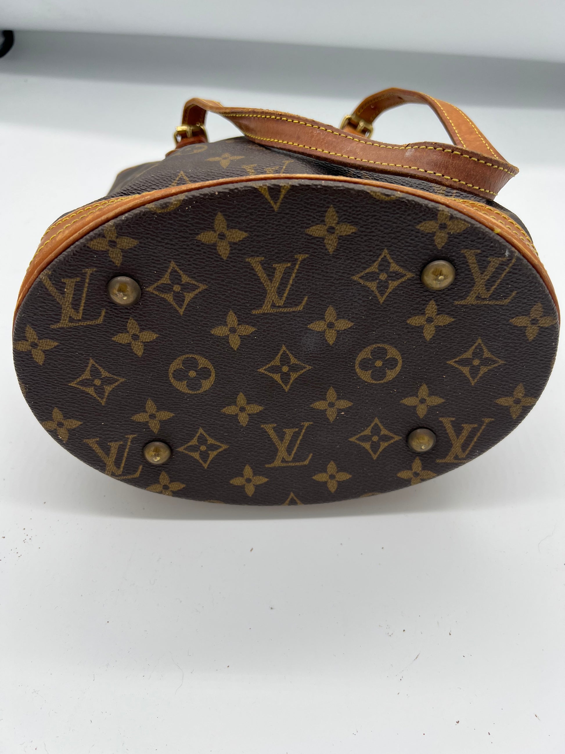 Beautiful vintage Louis Vuitton bucket bag in brown leather. This bag has been worn and has some signs of wear mainly to the inside. The leather on the inside is a bit sticky and is coming loose. You can use a bag organizer inside the bag so you won’t notice it. On the outside still a beautiful bag. Please take a good look at the pictures.