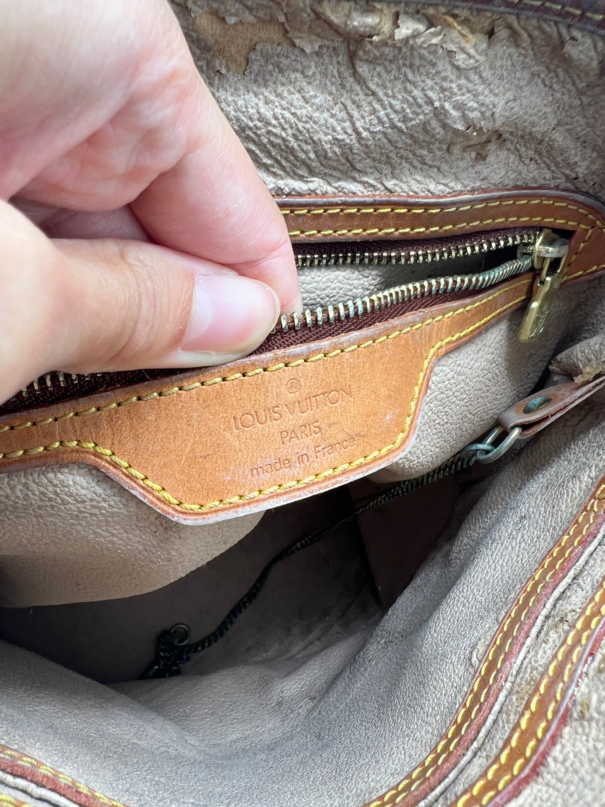 Beautiful vintage Louis Vuitton bucket bag in brown leather. This bag has been worn and has some signs of wear mainly to the inside. The leather on the inside is a bit sticky and is coming loose. You can use a bag organizer inside the bag so you won’t notice it. On the outside still a beautiful bag. Please take a good look at the pictures.