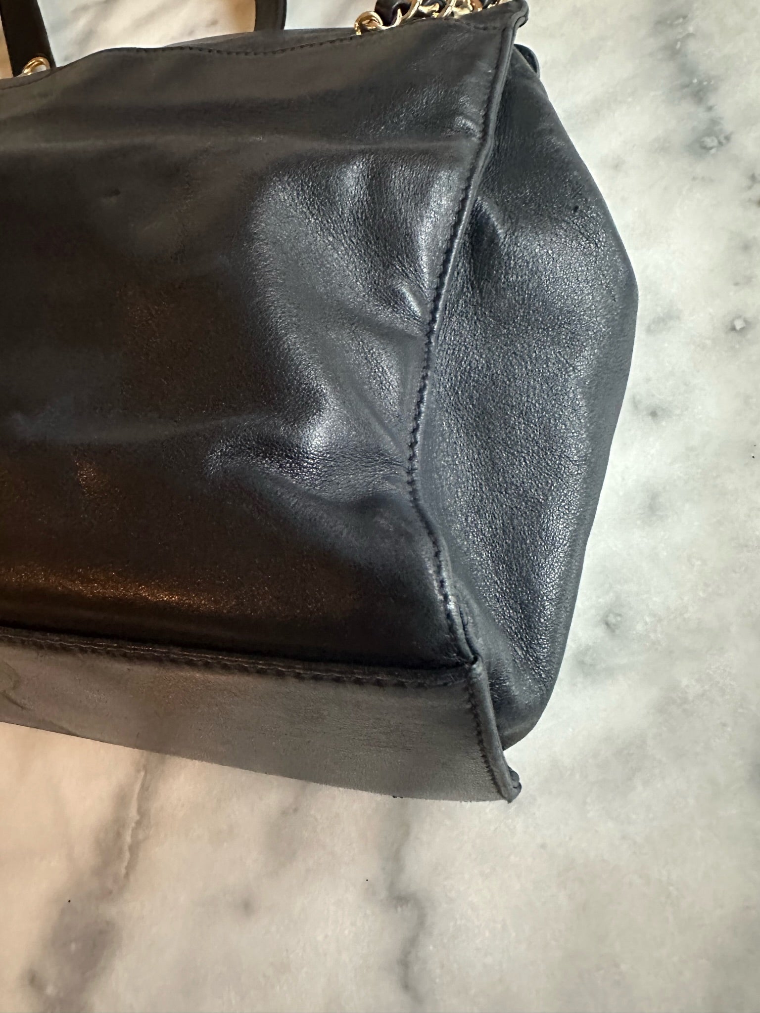 Beautiful vintage Chanel shoulder bag in dark blue navy leather. The bag has some small signs of wear to the leather and corners but is overall in very good condition. The code is inside and readable. Comes without dustbag card and box.